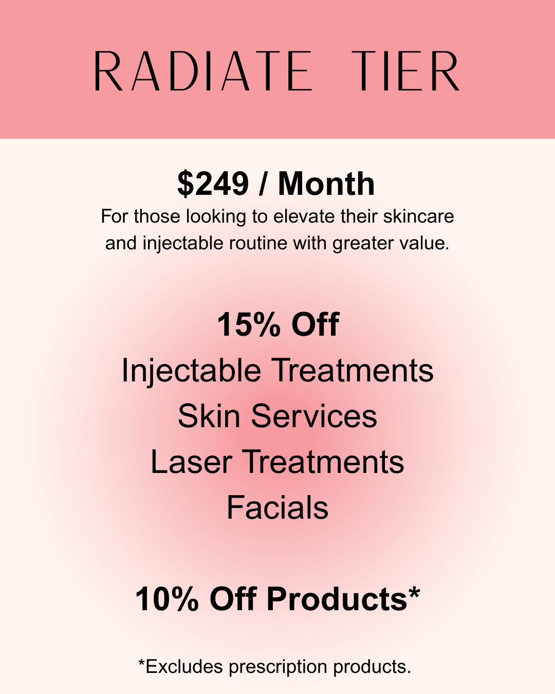 *Example pricing for Radiate tier Beauty Bank membership. Pricing varies by location and is subject to change.