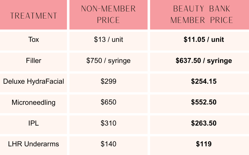 As a Beauty Bank Member earn 2% back in loyalty points on every dollar spent above your beauty bank on applicable injectable and skin services.